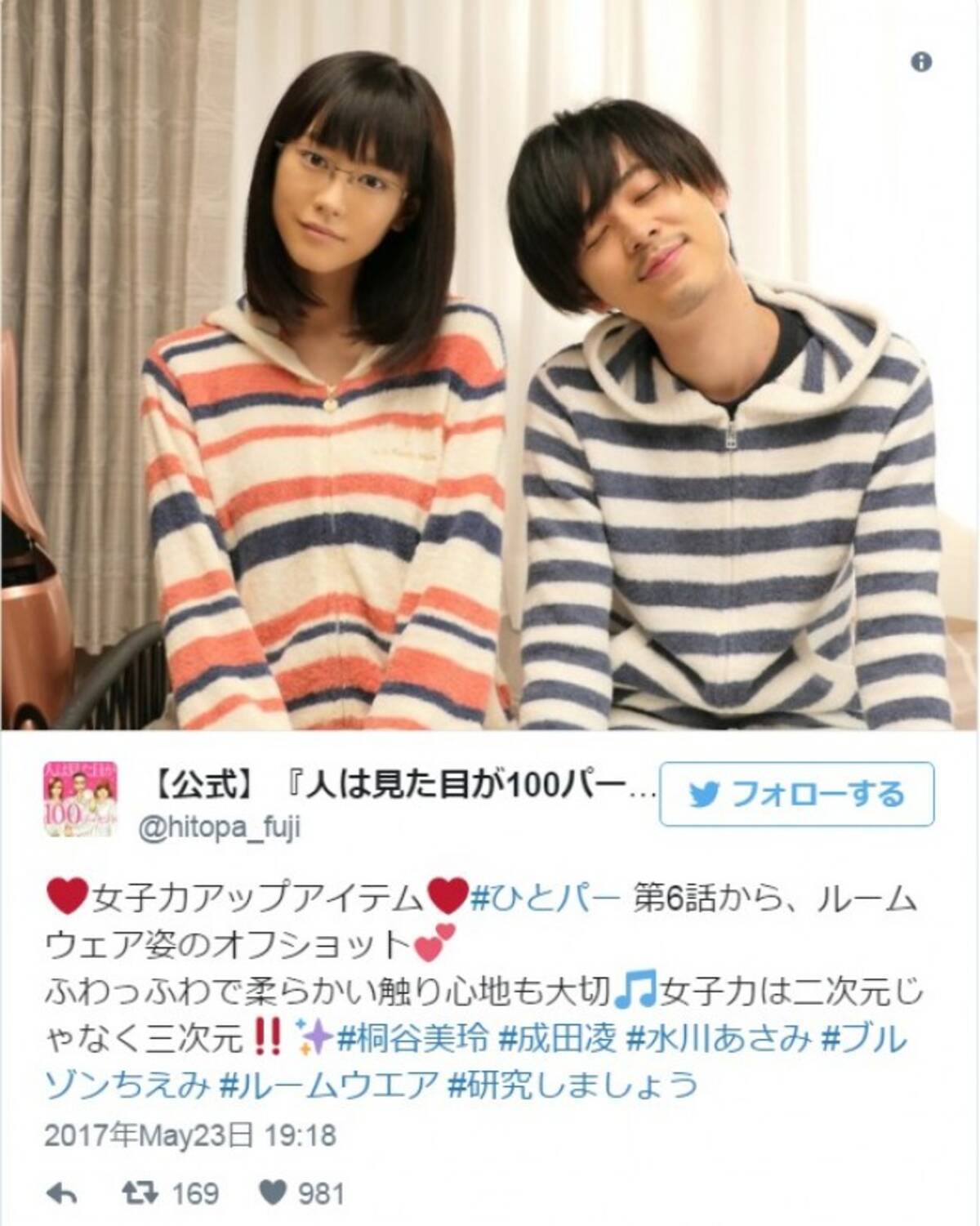 桐谷美玲 成田凌 ふわふわルームウェア姿でオフショット 17年5月24日 エキサイトニュース